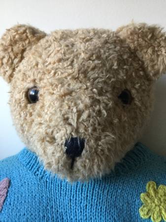 Very cute vintage Ty teddy bear. Beautiful knitted sweater, with floral details. 2 feet tall. Easy parking and pickup.
