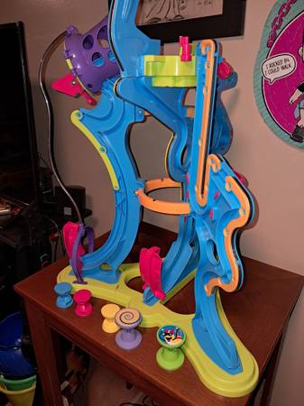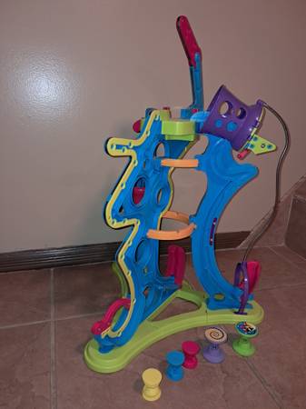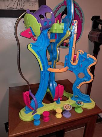 The Spinnyos Giant YO-ller Coaster set lets kids put their own 'spin' on the fun, choosing which way the YO will go each time – down the Wire Walk, Spiral Street or long slide, through the Bucket or in and out of the Magic Dipper. They can control how high the YOs jump and how fast or slow they go. Kids also decide how the YO will exit down below – with loop-de-loops, shoot-off fun or even barrel-crashing action. There are two YOs, a YO Launcher, Track Switcher, four different tracks, three crash barrels and adjustable ramps to change up the fun each and every time kids play.