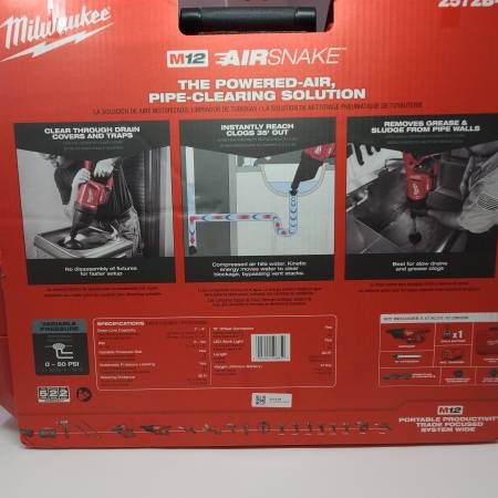 Milwaukee M12 Airsnake Drain Cleaning Air Gun Kit 2572B-21 w/...
