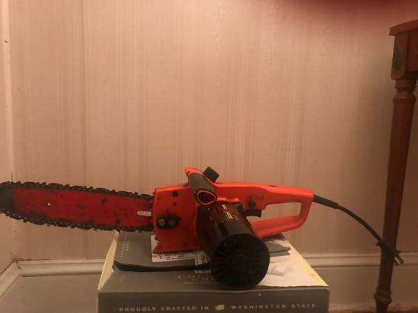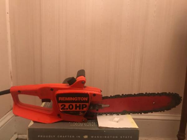 Remington Desa E1 2HP 12” Electric Chainsaw — Collector’s delight as it’s Rare Vintage. Requires likely a minor repair as it trips the electric. $50.