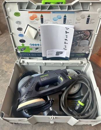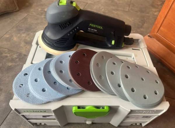 lightly used, includes 80 sheets of Festool sandpaper 40-400 grit