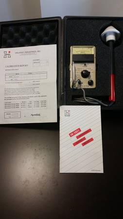 1) Holiday Survey Meter HI-1501. This meter tests for microwave leakage. It's an industrial quality meter. Last Calibrated to be within spec in 1992. I have the documentation. I used it once back then.