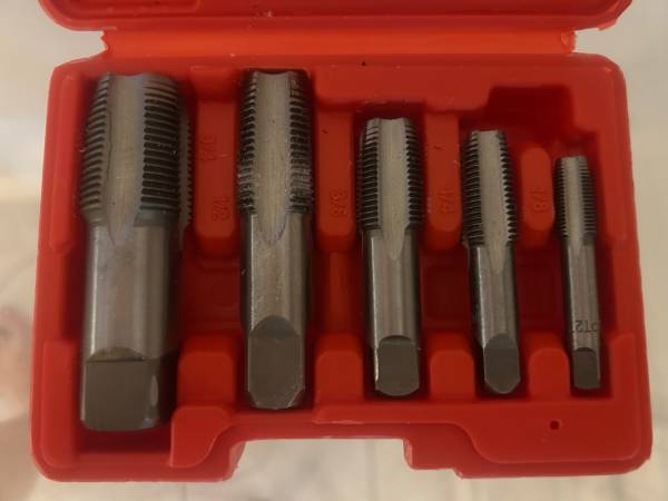 Versatility Redefined: Comprising 5 pieces, the set has the universal sizes; 1/8" - 27 NPT, 1/4" - 18 NPT, 3/8" - 18 NPT, 1/2" - 14 NPT, 3/4" - 14 NPT. Easily cut internal threads in pipes. It is used for the repair of rusted, broken and slippery threads of water pipe water joints. With its wide range of thread sizes, it effortlessly adapts to various applications. Whether you're working with metals, plastics, or even challenging materials, this threads tap can handle it all.