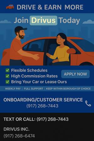 Drivus is a licensed TLC base operating in New York City, providing steady, high-paying rides through medical transportation and contract work.
