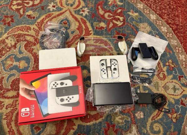 • Nintendo Switch OLED (White model, gently used, excellent condition). White Joycons used 1 time.