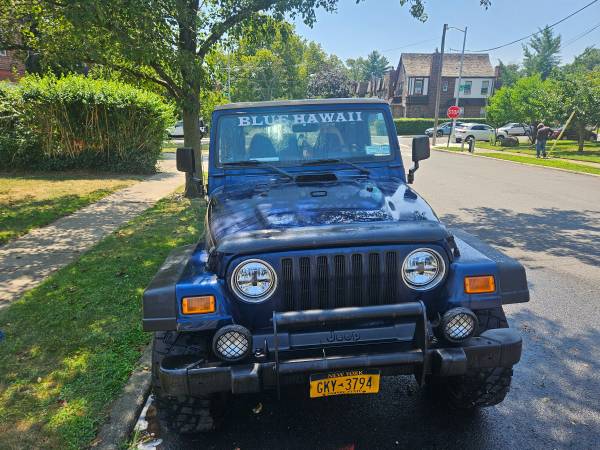 1. soft top tan with tinted windows top 2. matching half doors and key half tan matching windows carry cases for doors and windows full (EXTRA if interested). Full spare tire heavy duty carry rack for tire. Cover for when top is off completely. I changed brakes lines drums rotors have new shocks and transmission lines off road exhaust and new cat but haven't had a chance to change yet. Interior is great 3rd seat with extra seatbelt tow hitch. Ask questions if you need anything price is negotiable. Jeep TJ 4.0