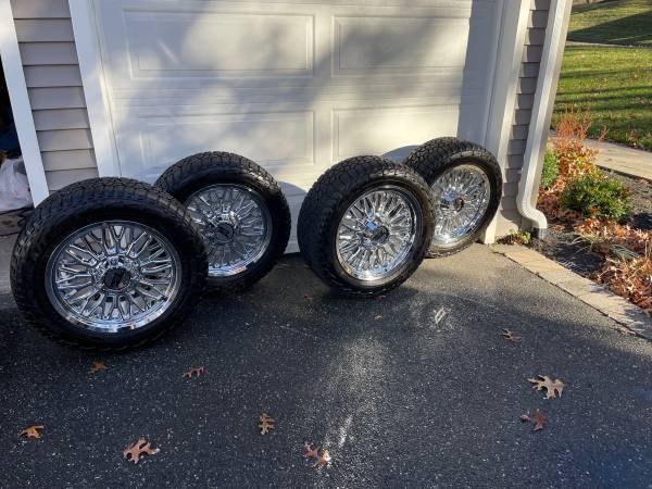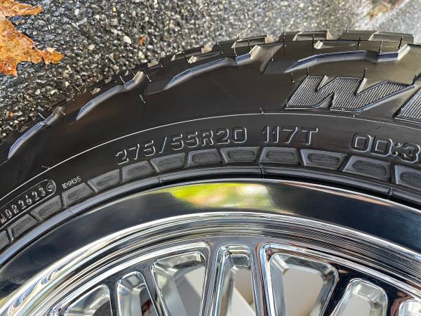 I have a set of Stinger 20x9 6x135/5.5 106 18 Chrome Custom Wheels with 275/55R20XL 117T Falken Wildpeak A/T 3W Tires for sale. I purchased them for my 2019 Ram 1500. I just traded in my truck without these custom wheels.