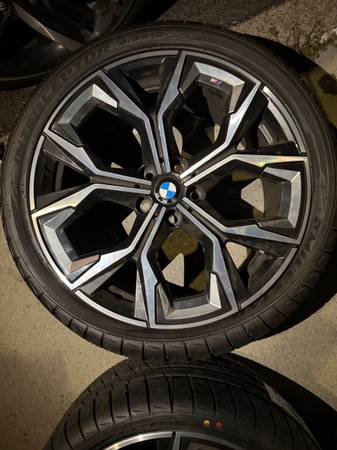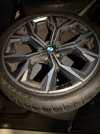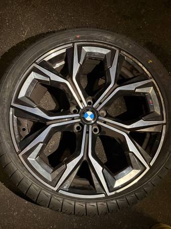 And 19.5 For the rear. Original wheel for BMW G26 M440 works on any M Car, one wheel has slight curb rash *in pictures* the rest are in mint condition does not include tire sensor, USE THE ONE ON UR ORIGINAL CAR/ SERIOUS INQUIRES ONLY/ PLEASE DONT LOW BALL. THEY ARE OEM M WHEELS. 2 rear tires Brand New 2 slightly