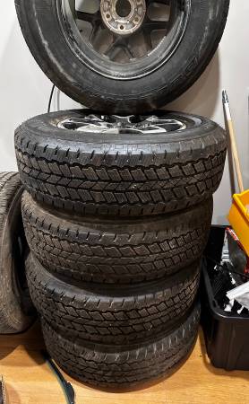 About 500 miles on them. Stock Bridgestone Dueler A/T RH-S, all-season, all-terrain tire. 5 Tires and rims. For Ford Bronco. Stored indoors.