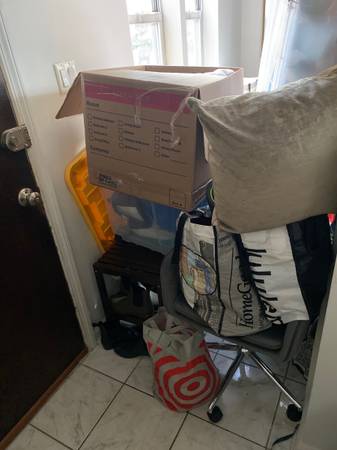 I will professional organizer and every week I have this amount of stuff if not more until I start my nonprofit and actually get a warehouse. The items vary because every client is different. I do not go through the items. I just put them to the side and normally I have somebody from DHS come pick them up and then use them in the Shelter system, but they are on vacation for two weeks. And it’s piling up. So if somebody just wants to come and take everything, it’s yours. Most of the things are in excellent condition. Some items are less than good. Excellent condition, but can be repurposed into rags