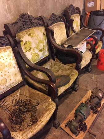 Four Parlor Chairs, two King, two Queen. Lions with claw feet. Need refinishing & upholstery. Providence unknown, likely English royalty. $150 for all four.