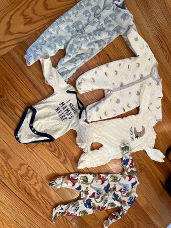Newborn 0-3M boy clothes. Onesies, zip ups. 2 bags full. pick up on Rockland & Neveda Avenue. NEWBORN boys.