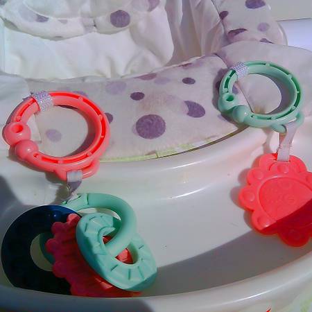 Comes with 2 linkable baby toys for playtime