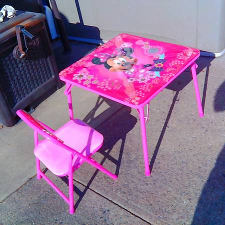 Minnie Mouse Blossoms Bows Jr. Activity Folding Table 1 Padded Chairs Set W/ Box