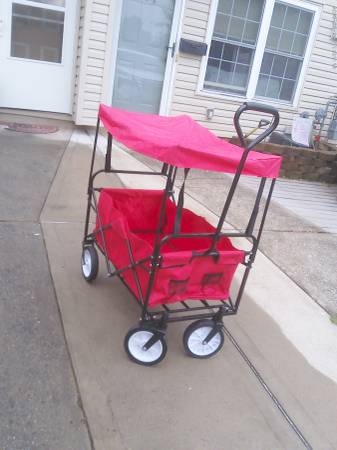 Collapsible Folding Outdoor Utility Wagon with Canopy Garden Cart for Beach, Picnic, Camping, Tailgates w/Removable Canopy, Detachable Pockets, 150lb Weight Capacity - Red
