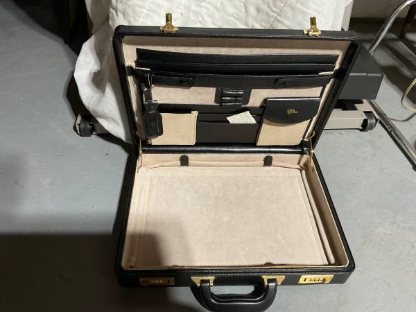 Italian Black leather case with beige and suede with separate compartments for organization Combination locks for security Cash only upon sale