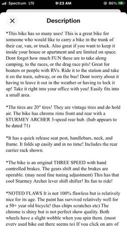 This bike has all original parts that it came from the factory including tires and rims Stumey Archer 3Speed, .The bike’s has been stored in a dry basement.There is no rust (A few minor scratches on the fenders.)The frame is in mint condition .The bike is in Staten Island Tottenville