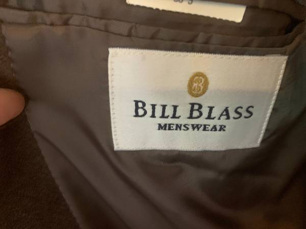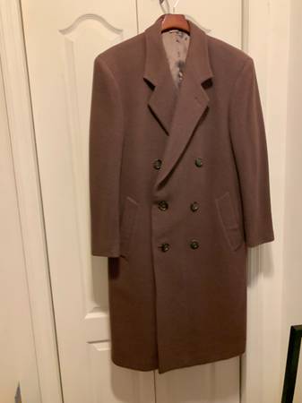 BILL BLASS MENS BROWN WOOL DOUBLE BREASTED DRESS COAT.