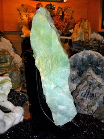 This is an Exceptional Lustrous Top Quality Museum Specimen of 6.08 lbs. Huge Eye Catching Aquamarine Single Crystal Cluster. This Cluster is Aquamarine Crystals Thru out the Crystal Cluster has Exceptional Colors of Blues and Multi Colors. This Aquamarine Crystal Cluster is Perfect with Perfection and Just Breath Taking. It just Lustrous Glow and Full of Luster. Triple AAA+++ Grade and Especially a One of a Kind. Aquamarine Crystal It is calming, soothing, and cleansing, and inspires truth, trust and letting go. In ancient lore, Aquamarine was believed to be the treasure of mermaids, and was used by sailors as a talisman of good luck, fearlessness and protection. It was also considered a stone of eternal youth and happiness. Aquamarine evokes the purity of crystalline waters, and the exhilaration and relaxation of the sea. It is calming, soothing, and cleansing, and inspires truth, trust and letting go. ... The name Aquamarine comes from the Latin aqua marinus, meaning "water of the sea," and refers to its sparkling ocean-like color. Aquamarine is a “Stone of Courage and Protection”. Used often with the Throat Chakra, Aquamarine can be used to promote verbal self-expression. It is often used to enhance spiritual communication and clear communication blocks. Aquamarine is also used to align all of the chakras and enhance the aura. For example, emerald is a variety of a beryl, so are aquamarines. Emerald is precious while aquamarine is semi-precious. Today some semi-precious gemstones can be worth much more than a precious stone. Aquamarine is a stone of courage. Its calming energies reduce stress and quiet the mind. Aquamarine has an affinity with sensitive people. It can invoke tolerance of others and overcomes judgmentalism, giving support to those overwhelmed by responsibility. Aquamarine utilizes Water energy, the energy of stillness, quiet strength, and purification. It embodies potentialities unrealized. It is yielding, formless, yet powerful. The Water element brings power of regeneration and rebirth. Aquamarine actually comes from the phase “water of the sea” - a name that originated in the early 1700's during the Georgian jewelry era. It was also once known as the “Sailor's Stone” because seafarers once believed that aquamarines would protect them from coarse seas and unendurable storms. The majority of aquamarine is found in Brazil. The largest aquamarine (110 kg) was found in 1910, at Marambaia / Minas Gerais / Brazil. Other important deposits are in Angola, Kenya, central Madagascar, Malawi, Nigeria, Mozambique, Pakistan, Ural Mountains in Russia, Tanzania, Colorado / USA, and Zambia. The first documented discovery of Aquamarine took place in 1723 in the Adun-Chalon Mountains in Siberia. Deposits found at this site were rather abundant and it quickly became the primary site for mining it. Aquamarine is made of a Beryllium, Aluminium Silicate and is part of the Beryl family of minerals. Beryl can be many colors but when it's blue or blue-green it is called aquamarine. The gem's most valuable color is a dark blue to slightly greenish blue with moderately strong intensity. In general, the purer and more intense the blue color, the more valuable the stone. Most aquamarine is a light greenish blue. The deep colors are the most valuable. A deeply saturated blue is the most desired and valued shade of aquamarine. While evaluating an aquamarine, one of the most important criteria is the color intensity. Aquamarine is a rare semi-precious gemstone so the price should reflect this. The soothing energy of Aquamarine makes it a perfect companion to calm fears and phobias. Aquamarine is a “Stone of Courage and Protection”. Used often with the Throat Chakra, Aquamarine can be used to promote verbal self-expression. It is often used to enhance spiritual communication and clear communication blocks. Aquamarine is a stone of courage. Its calming energies reduce stress and quiet the mind. Aquamarine has an affinity with sensitive people. It can invoke tolerance of others and overcomes judgmentalism, giving support to those overwhelmed by responsibility. Measurements: 9" Tall, 6" Wide and 2 1/2" Thick. Weight: 6.08 lbs. Very Well Kept in My Collection Cabinet Gallery over 25 Years. Origin: Minas Gerais / Brazil. Exceptional Price: $475.00 Shipping and Handling: $35.00 You Won't Find Anything in Such Quality Online and ebay. Pictures Shows all Angles of this Beautiful Aquamarine Crystal Cluster. The Best of The Best. This is Just Simply Breath Taking Aquamarine Crystal Cluster. Visit:www.paulsgems.com