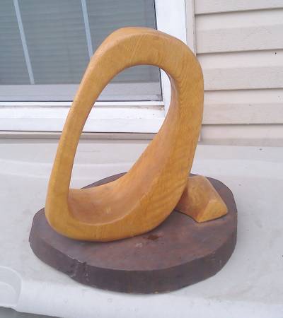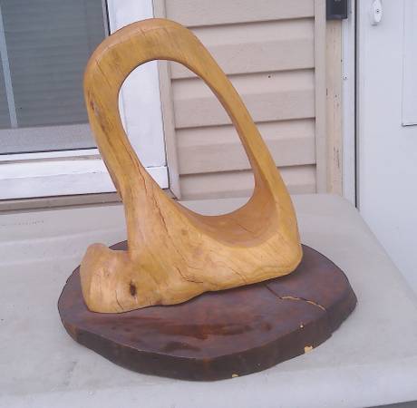 Large Unique Carved Wood Circle of Life Abstract Wood Sculptor Sitting on a wood Base