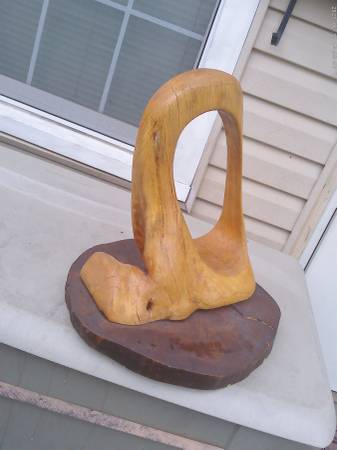 Nice looking Chain Saw Carving Wood Artwork Sitting on a wood Base, to Enjoy