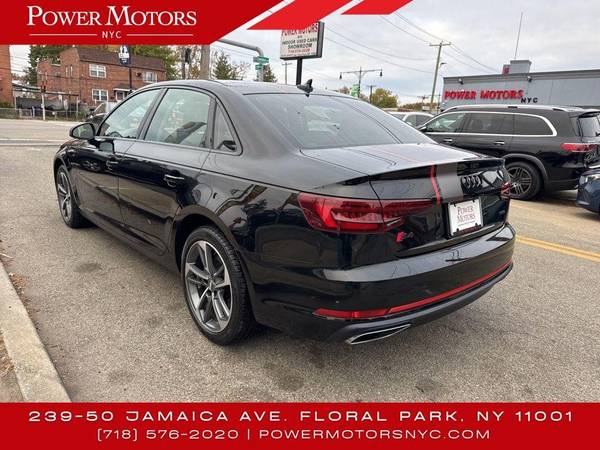 Welcome to Power Motors NYC! We offer premium luxury vehicles in a boutique setting so your car buying experience is second to none. All of our vehicles come with the Power Motors NYC promise, here at the home of the BestCarDeals we'll always be there to assist you. Come in for a test drive today, we look forward to seeing you soon! *See dealer website for pricing details* https://www.powermotorsnyc.com/ Black 2019 Audi A4 2.0T Premium 2.0L I4 TFSI DOHC FrontTrak 7-Speed Automatic S tronic, Leather.