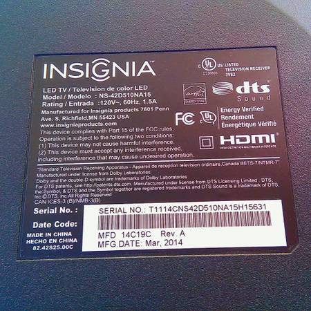 Insignia™ - 42" NS-42D510NA15 1080p LED HDTV TV Tested Working