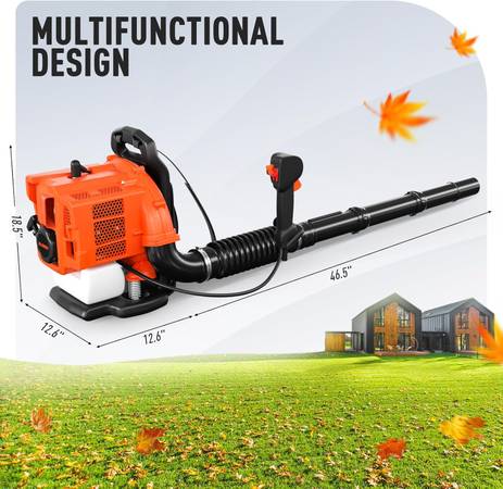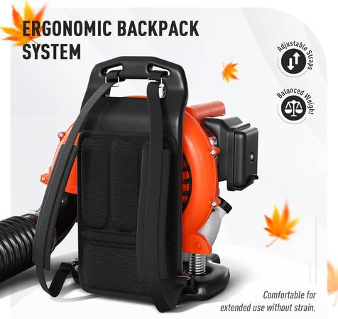 Professional-grade 80cc gas backpack blower with power far above standard home units. Perfect for large yards, commercial use, or heavy debris.