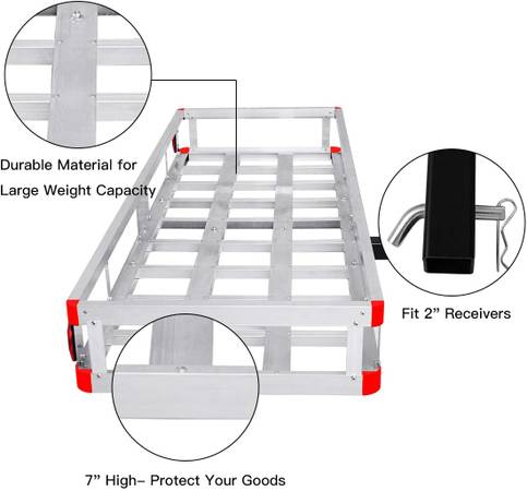 Brand New Aluminum Hitch Cargo Carrier – 60"x22"x7" Basket, 500 lb Capacity, Fits 2” Receiver