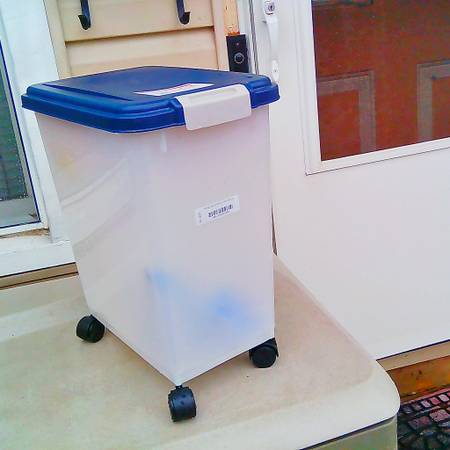 FOOD FOR ALL: For your cats, dogs, birds, and more. Store your cute family member's dry foods into sealable and portable pet food container. 33 Qt size food storage container is great for storing up to 30 Lbs of dry food. capacity varies by the brand and type of food.