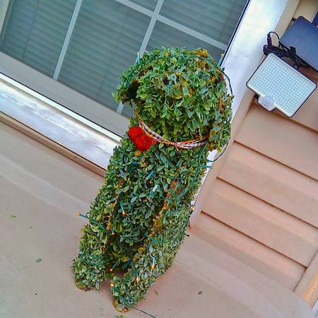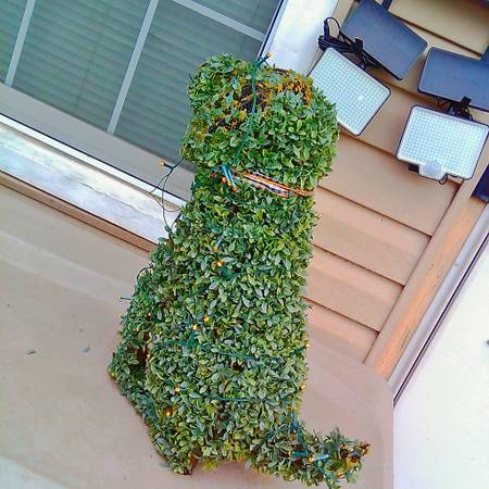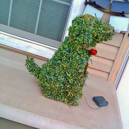 LED Artificial lighted Sitting Dog Topiary, Christmas Light up decoration dog This is used in Good condition and Clean, see all my pic's for a Better Look it's shedding a little bit,, should be ok...