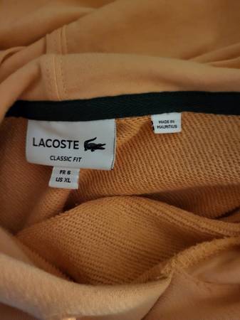 Coral/Peach colored XL Lacoste Hoodie. New No tags 25.00