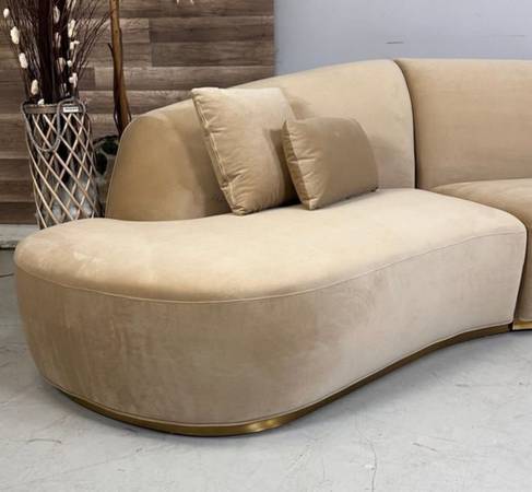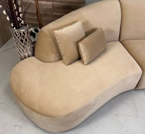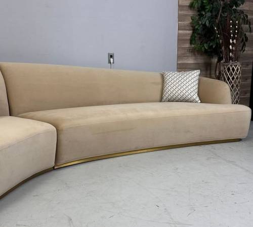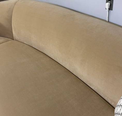 This is a customer-returned Reya Curved Sectional in the Dune finish—used for only about a week before returned. It’s in excellent condition overall, with just a small nick, that’s barely noticeable and doesn’t affect comfort or structure. The Reya features a smoothly curved silhouette that adds a modern flow to your living space, and its premium upholstery gives rich texture and durability. With generous width and sleek profile, it offers both style and roomy seating without feeling bulky.