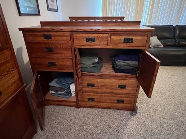 EXCELLENT SET NEARLY PERFECT CEDAR LINED DRAWERS LARGE DRESSER IS 2 PIECES EASY TO MOVE. $2000 MATTRESS WITH VERY LITTLE USE $500