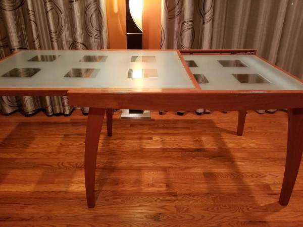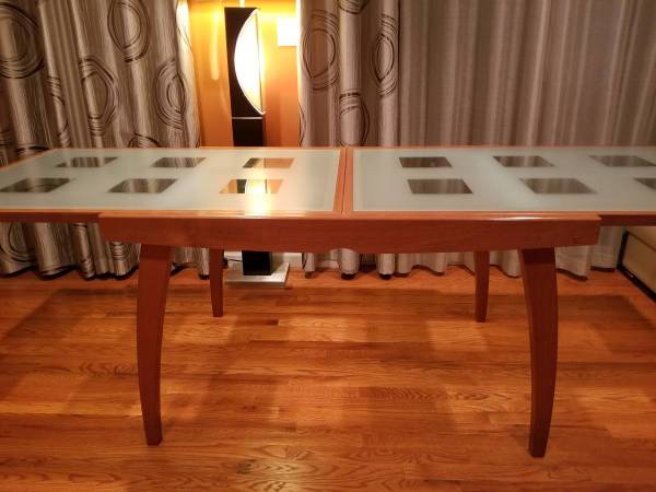 CALLIGARIS, REAL WOOD, TEMPERED GLASS TOP EXTENDABLE DINING ROOM TABLE