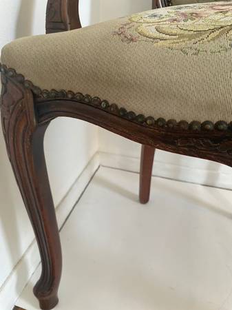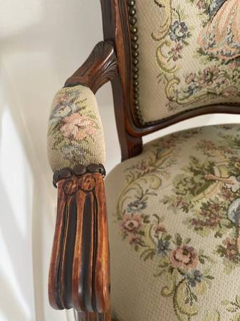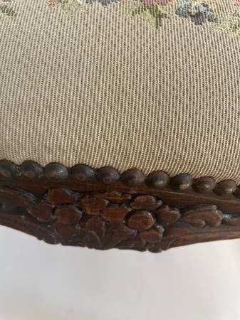 Immerse yourself in the charm of this vintage, carved wood accent armchair. The rich design and intricate carvings make this chair a stunning addition to any room. Good condition.