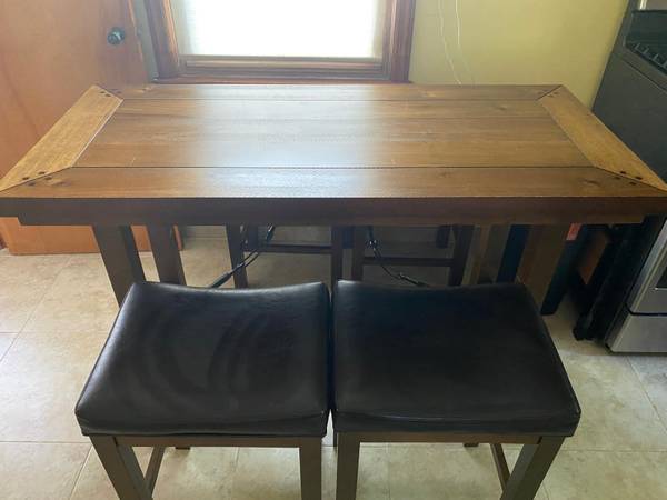 Selling a beautiful Ashley Furniture counter-height dining table with 4 matching stools. Dimensions: L 54” x W 24” x H 36” (counter height) Purchased new for $700, just 1 year old Table is in...