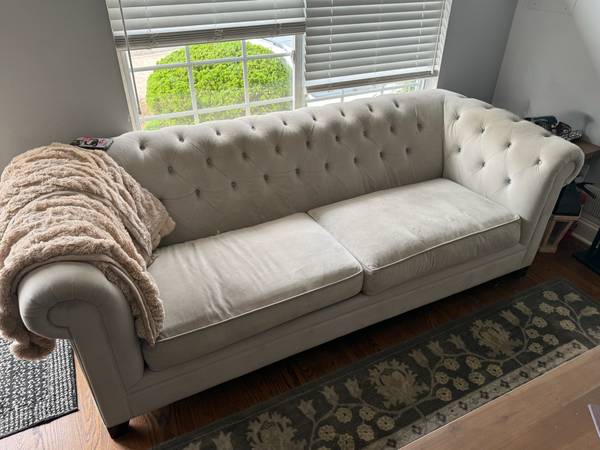 Sofa and Oversized Chair. Great condition, just needs a cleaning. Removable cushion - Can be machine washed. Bought in Macy's $100 FOR BOTH SOFA AND CHAIR! MUST BE PICKED UP TODAY IN STATEN ISLAND,...