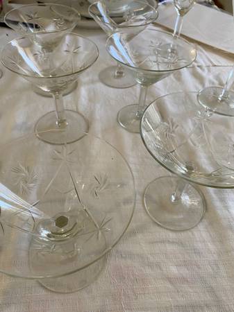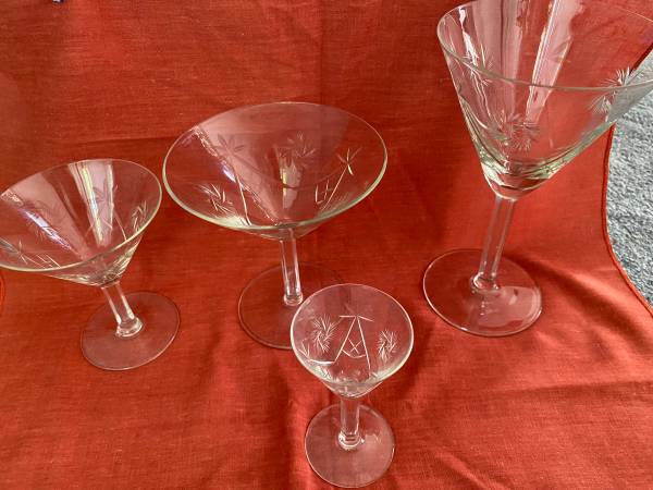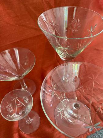 I know many do not have room for the entire set, so I am willing to sell the Wine glasses for $5 each and the Martini glasses for $4 each.