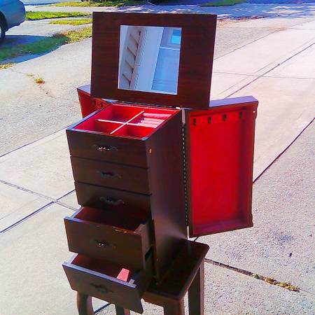 Jewelry Armoire Free Standing with Top Flip Mirror 4 Drawers Brown, very nice Looking