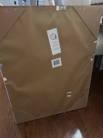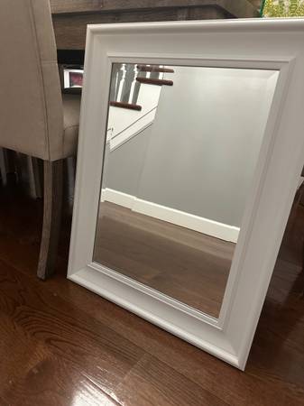 White mirror. Practically new. Was hung in small bathroom. Excellent condition. 24.5inches x 27.5 inches