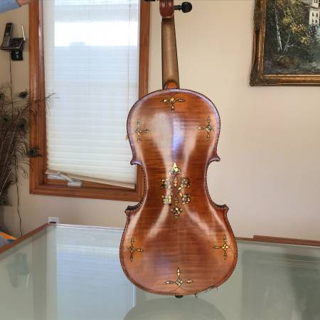 4/4 violin created by unknown German violin maker in early 1900th with beautiful inlay on lower deck and shell is for sale. If you are interested, please call Cash and pick up only