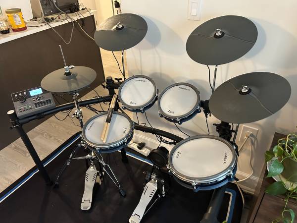 This drum kit is really good for the money. It features all dual zone drums 2x10", 2x8", kick tower, all dual zone 12" cymbals, and a two piece 12" hi hat system that works on a real hi hat stand. Also includes a nice bass drum pedal and sticks. This is great for home practice or recording. All mesh pads for quiet playing with headphones. Great for NYC living! It features USB and Standard MIDI in/out, stereo outputs, Bluetooth audio input, and an advanced drum module. The kit is basically brand new; I only put it together to test and make this video https://www.youtube.com/watch?v=wyEbUSqOfqM. Get it pre-assembled and already fine-tuned and at a steep discount. They're $549 plus tax on Amazon. Setup and ready to rock! Module sounds good and works really great with EZDrummer or other VSTs.