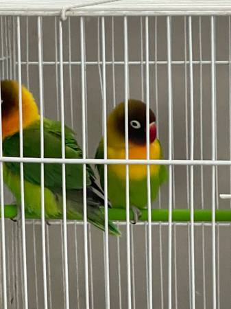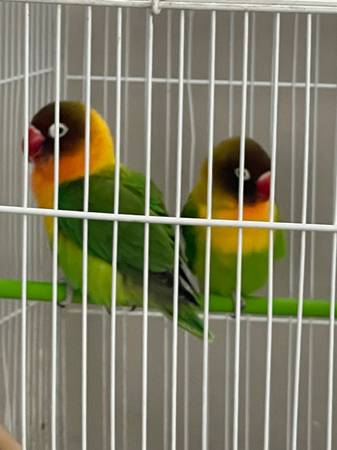 Rehoming proven love birds had 3 cluches. Make beautiful color babies. With cage. 375