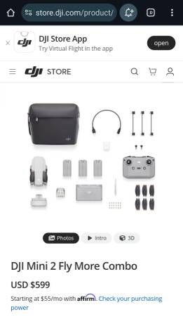 Basically new flown a couple of times to do a roof inspection thats it . dji mavic mini 2 fly more combo kit comes w 2 extra batteries vs 1 with the standard package +extra propellers , +bag, etc....