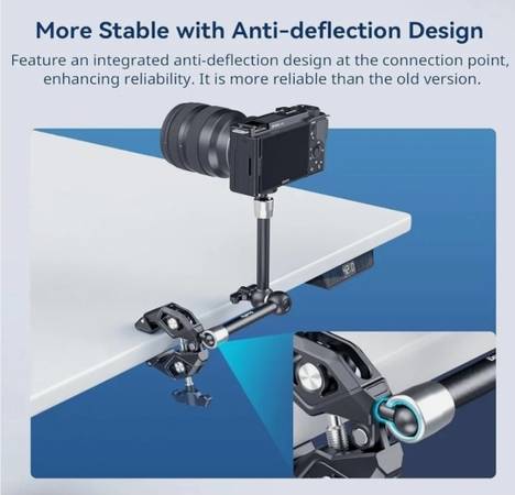 More Stable with Anti-deflection Design】The crab clamp and magic arm feature an integrated anti-deflection design at the connection point, enhancing reliability. It is more reliable than the old version. With no loosening during use, you can focus on your creative work.