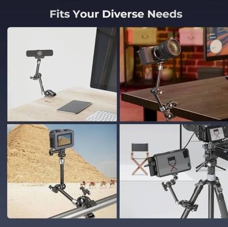 【Versatile, Also Easy To Use】Adjust the device flexibly to the desired position with just 1 knob, recommended load capacity of 1.5KG, suitable for small cameras, monitors, lights, webcams, action cameras, microphones, etc. For POV footage.