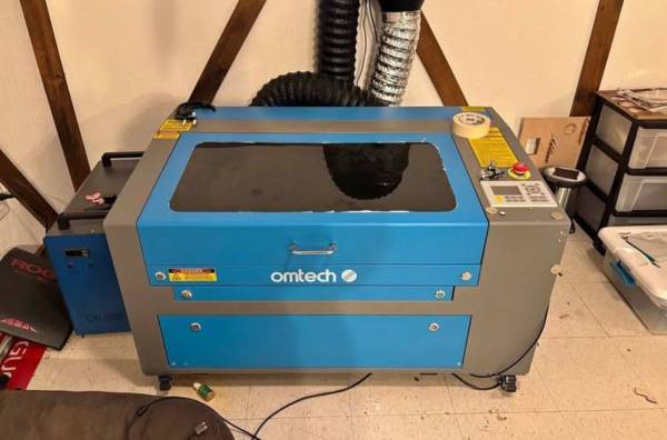 Barely used omtech laser 60 w. Comes with fan & chiller. Used less than 40 hours. Selling because my husband doesn’t have time to use it like he would like.