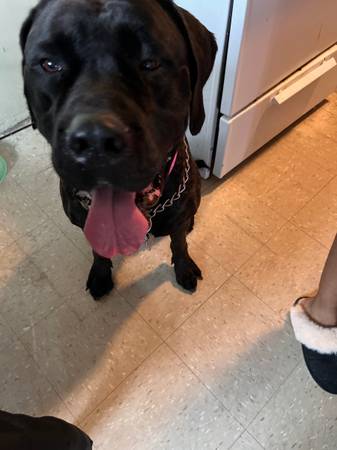 Unfortunately, I am not able to keep my lovely dog Sin Sin due to moving to another state, she is a gentle giant loves cuddles very good with other kids, dogs bunnies cats. She may be shy at first, but we will be able to warm up to you very quickly. She is a lap dog, even though she is very big she weighs about 125 pounds. She is up-to-date with her shots. She was a rescue she is not allergic to anything. I was giving her pedigree because she does not like blue so much. She loves to play with toys, especially squeaky ones or stuffed animals. She comes with bows a leash a harness she pulls a little bit, but with a little bit little bit of training, she’ll understand she loves to chase squirrels and she loves to watch any Disney movie with you. She can adapt to an apartment or in house. I am not asking for any rehoming fee just someone who will take good care of her. Please contact me before December 20. We can set up a meet and greet.