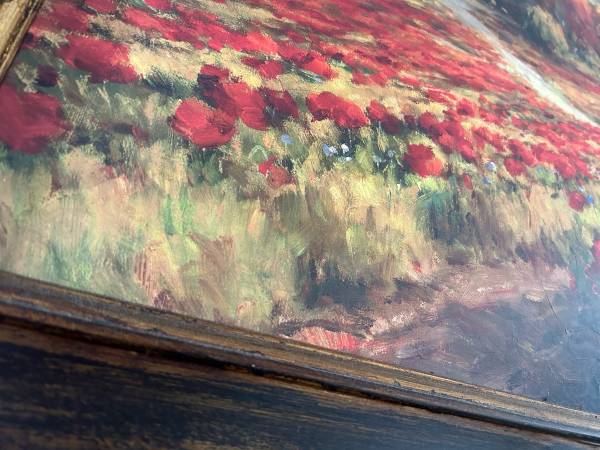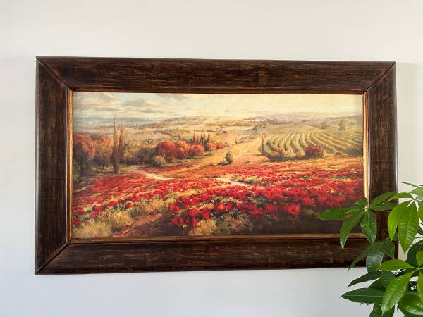 This is an amazing piece! With beautiful colors about Tuscany Valley Scene with all the flowers and I’d say amazing for fall and Italian lovers. Size is shown in the pictures! Beautiful wooden...